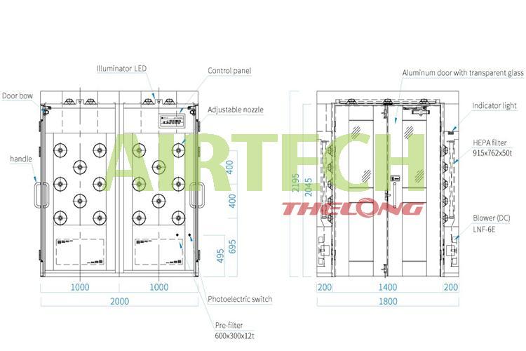 Airtech Thế Long xin gửi đến quý khách thông số kỹ thuật của buồng thổi khí đôi model AAS-1410EARM-2 như sau: