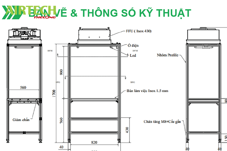 Airtech Thế Long xin gửi đến quý khách thông số kỹ thuật, bản vẽ clean bench model ATV-BTT-900 như sau: