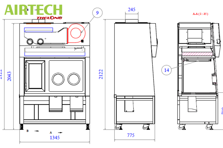 Airtech Thế Long xin gửi đến quý khách thông số kỹ thuật, bản vẽ của tủ pha hóa chất model ATV-FH1200-1350 như sau: